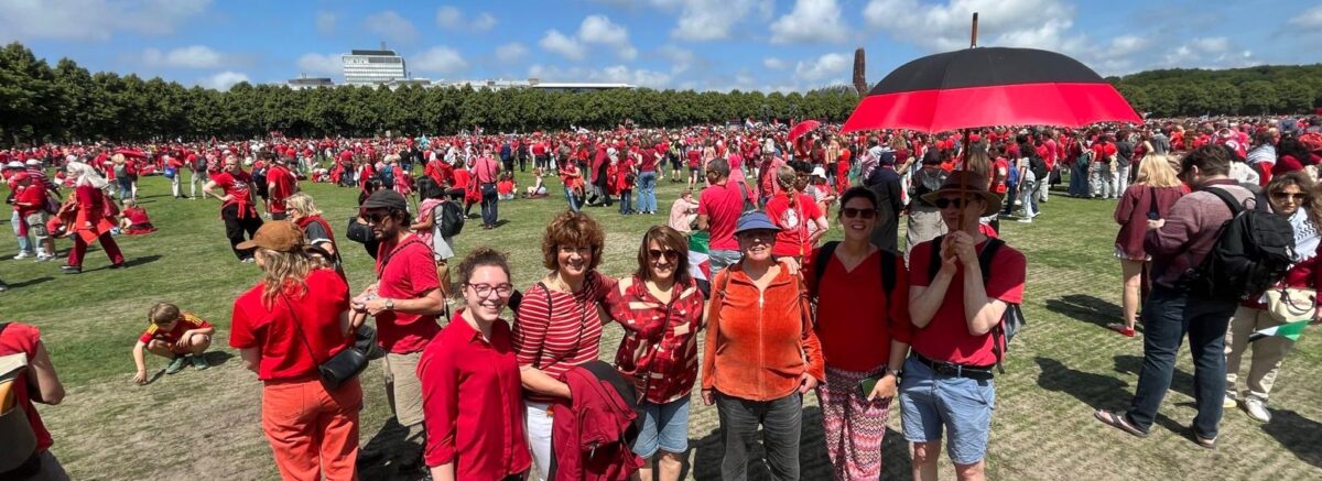 Amnesty Vlietstreek nam zondagmiddag 15 juni in Den Haag deel aan het Rode Lijn-protest tegen het kabinetsbeleid rond Israël. Rond 150.000 mensen kwamen naar het Malieveld om te protesteren tegen het geweld in Gaza. Afgelopen jaar stond Amnesty Vlietstreek met hetzelfde doel ook al op de Dam.
