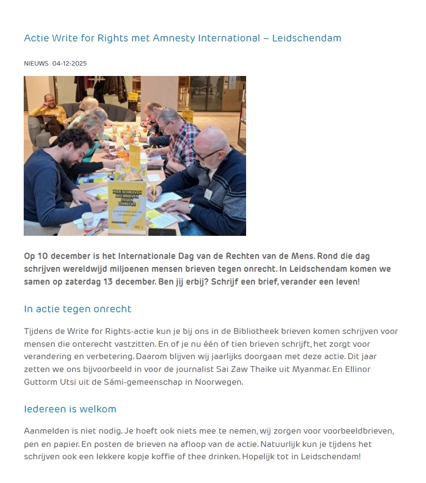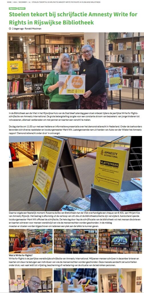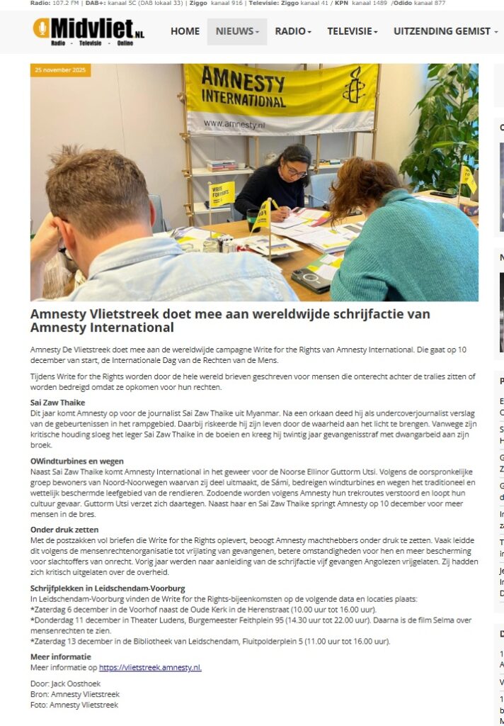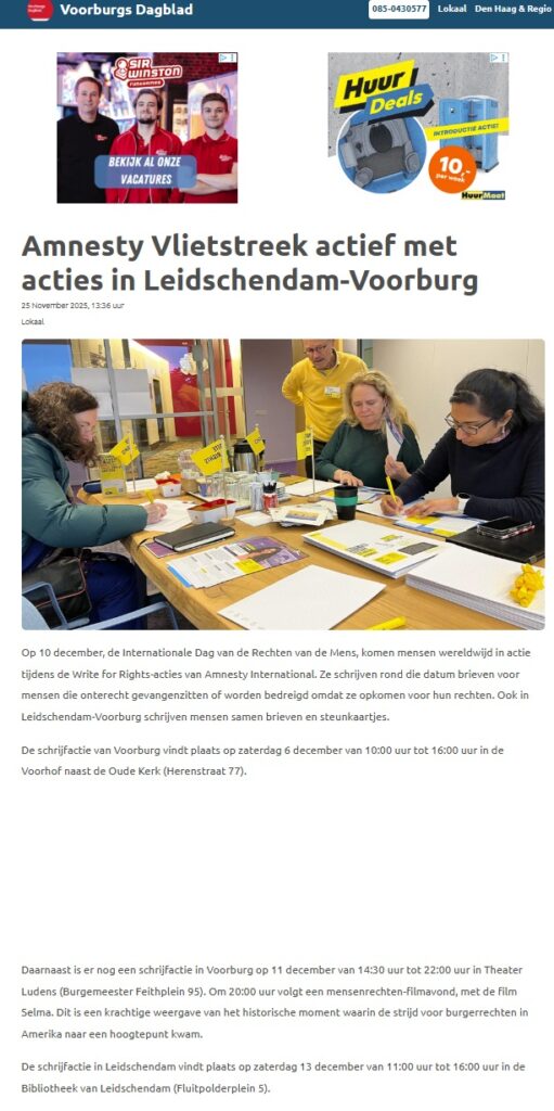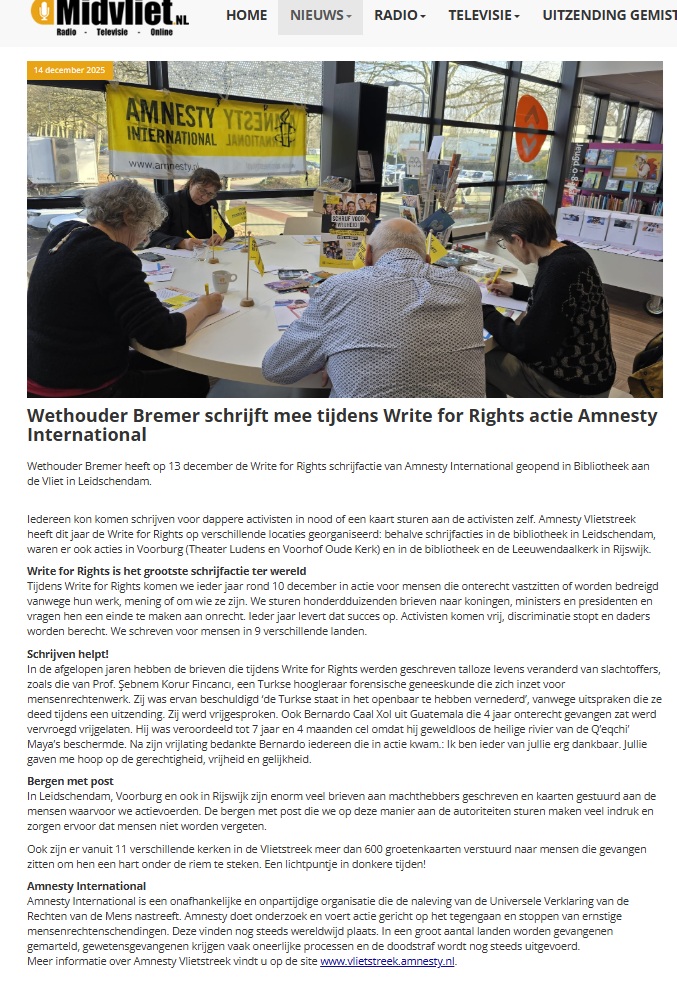 • Write for Rights Amnesty Vlietstreek