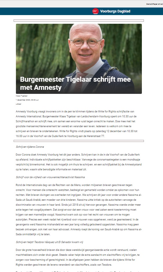 Burgemeester Jules Bijl Write for Rights